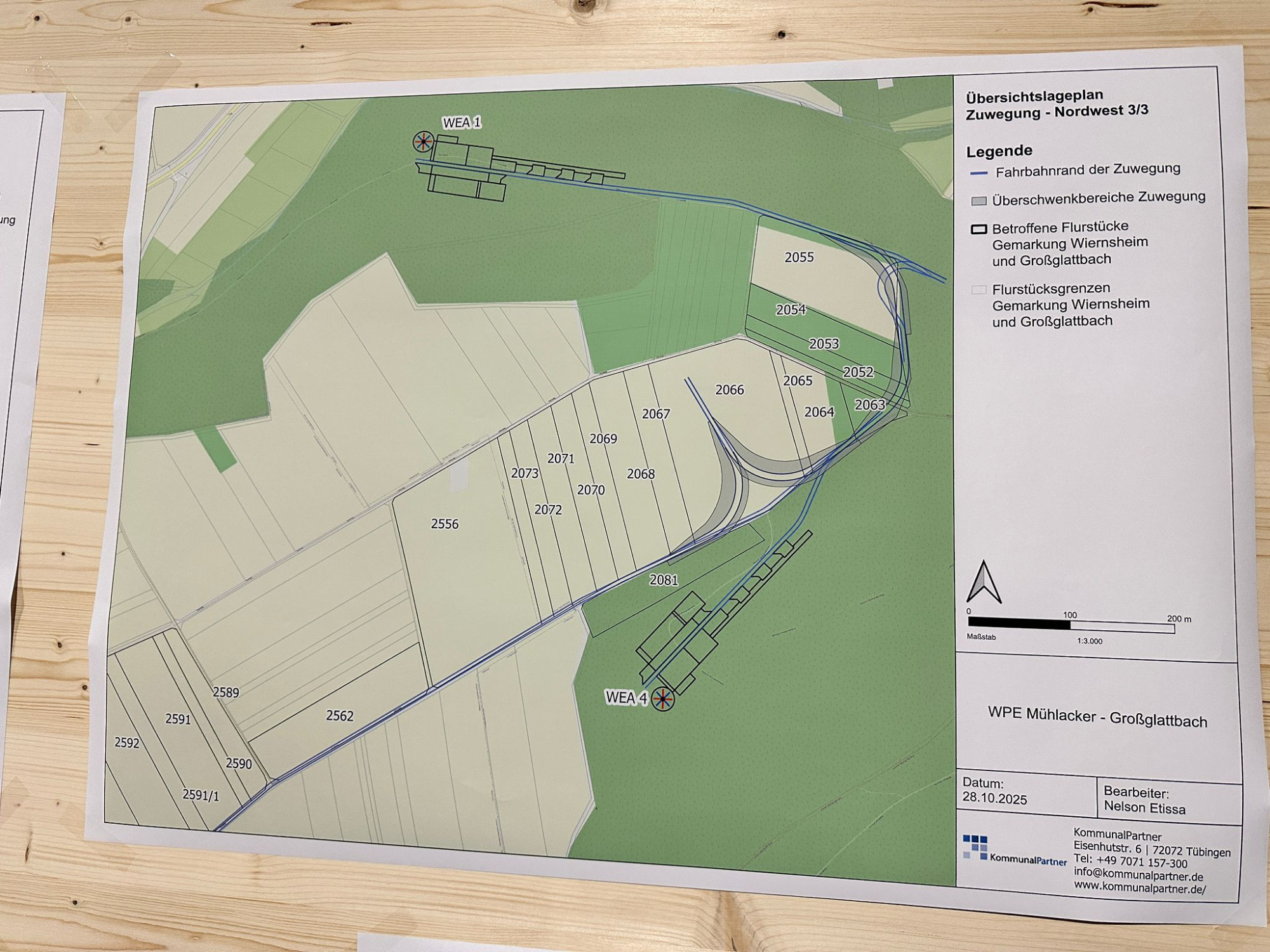 Hier sind die geplanten Standorte der vier WKA und deren Zuwege dargestellt.